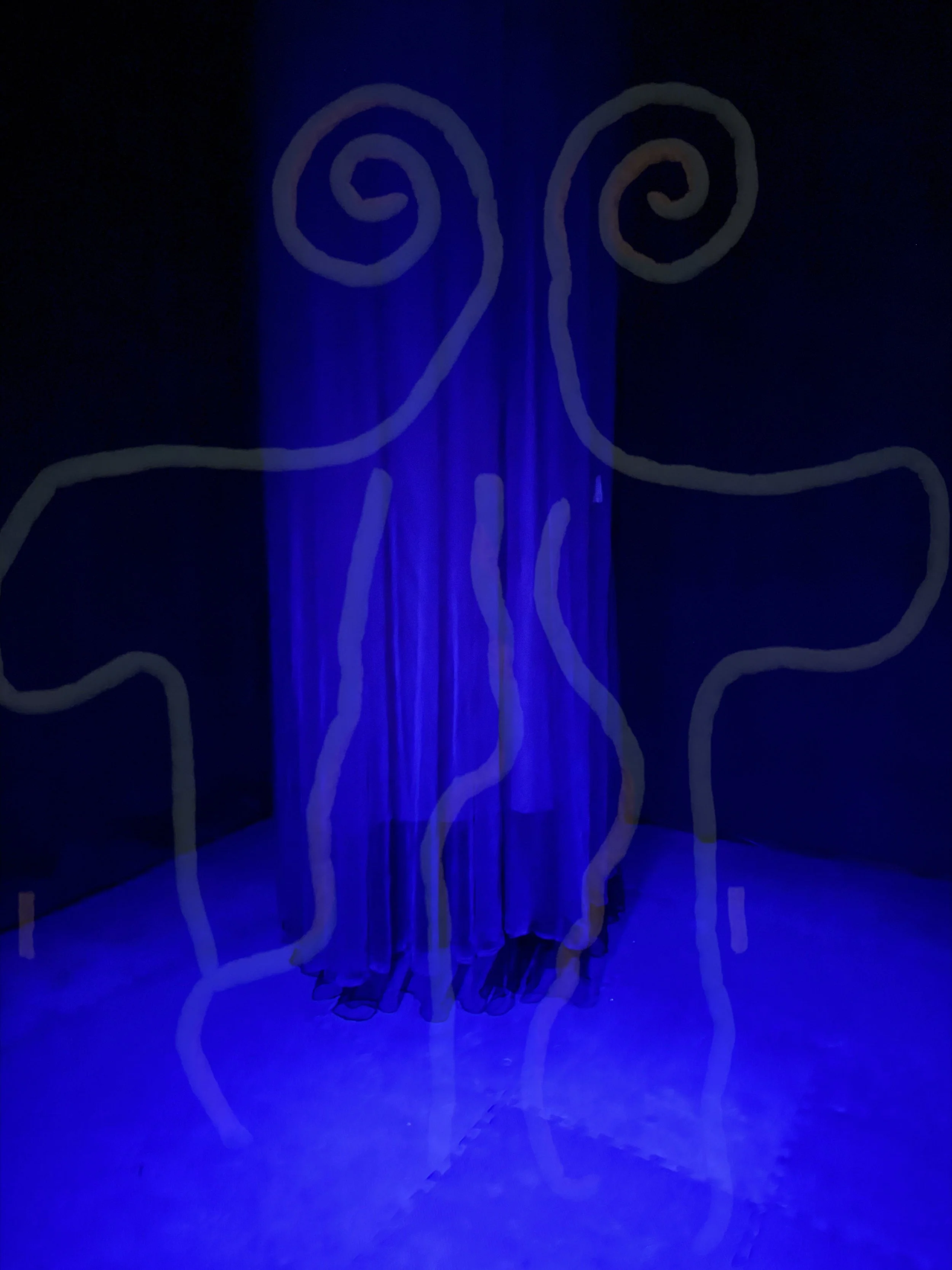 Three-channel audio, blue light, black light, heavy curtains, fabric pods, gauze, floor padding