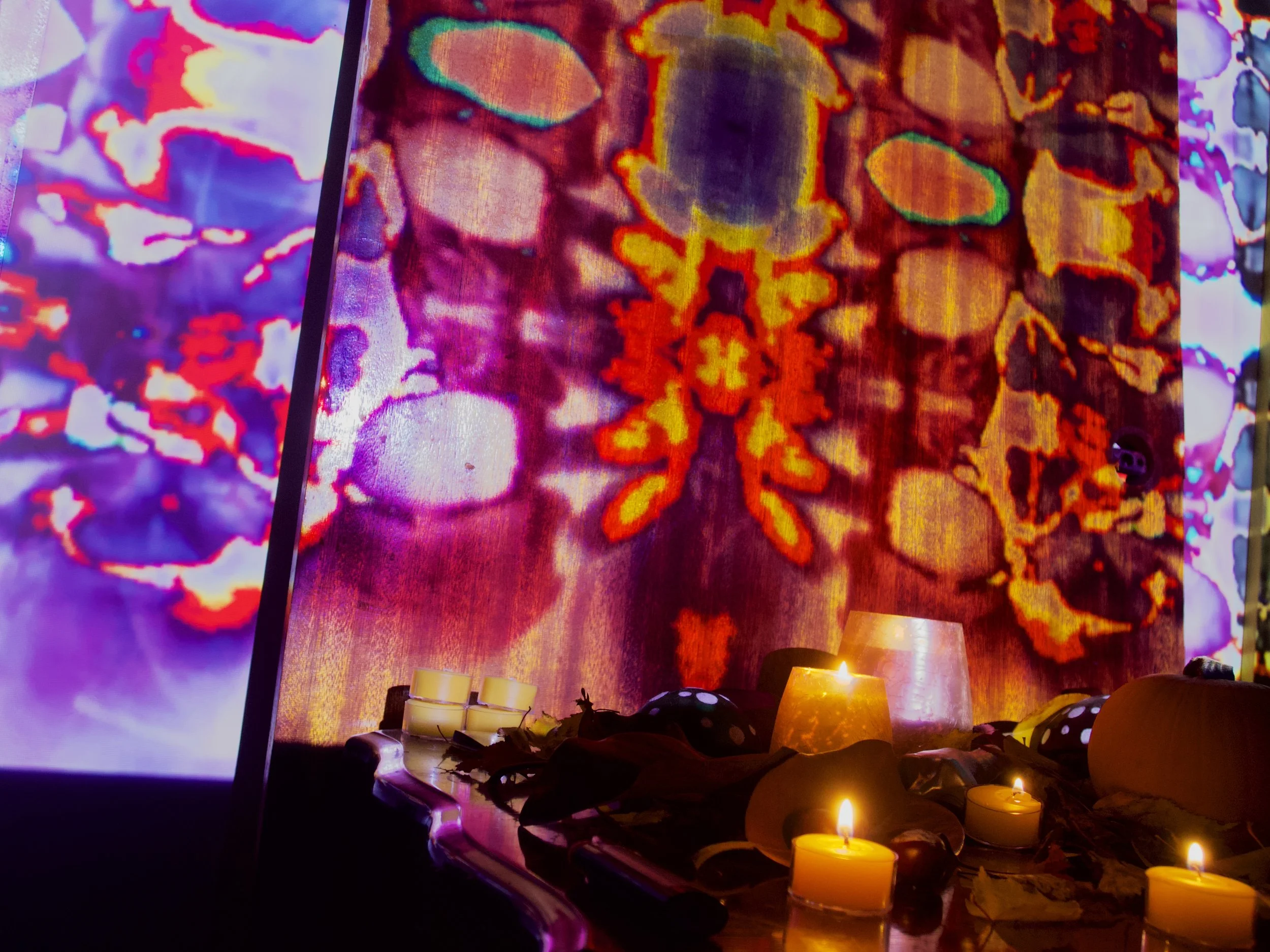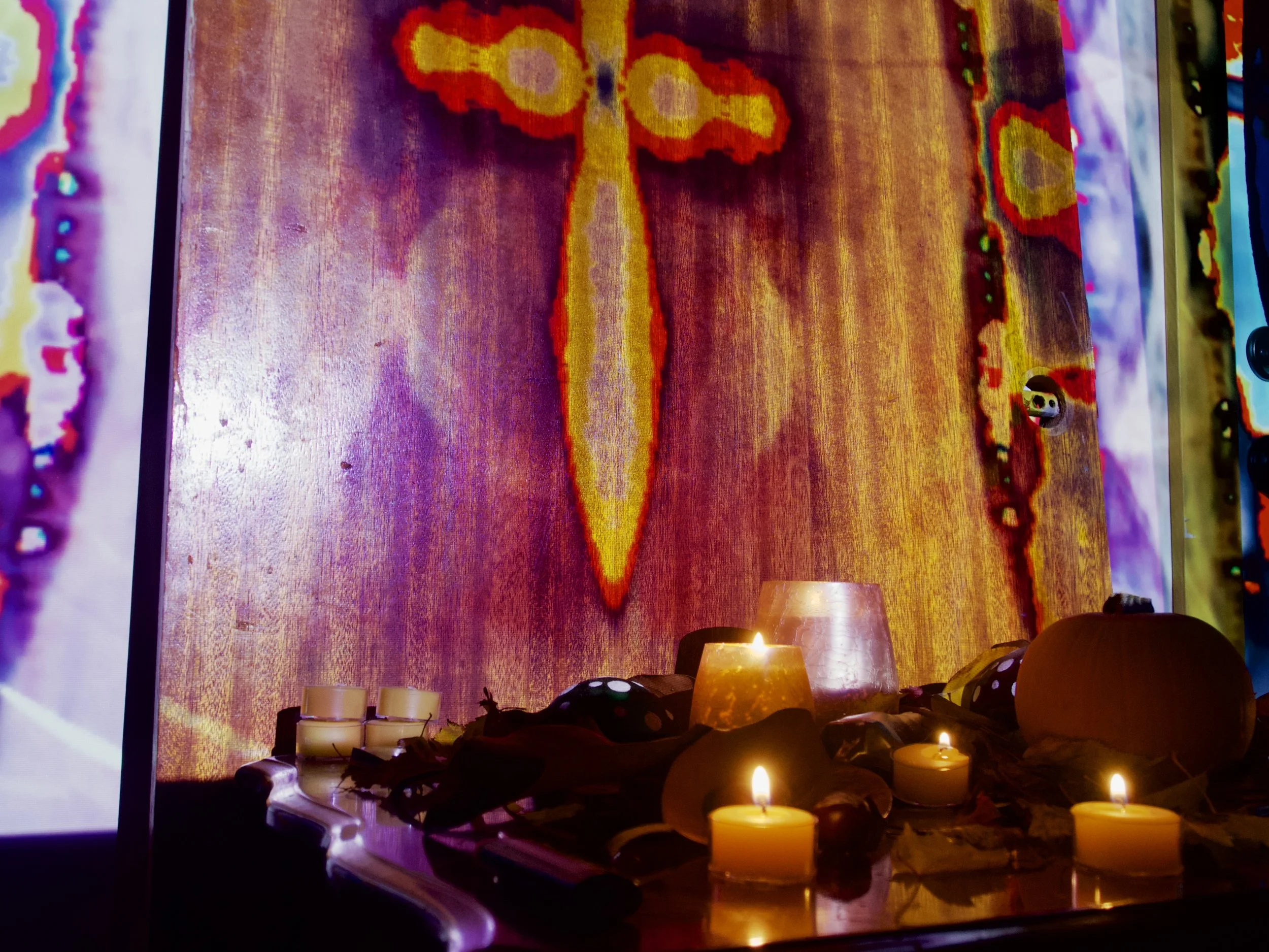 Dia de los Muertos is an immersive interactive installation presented at PortCottage PDX on November 1, 2022. The piece offered a performance aspect by including a webcam as part of the installation.