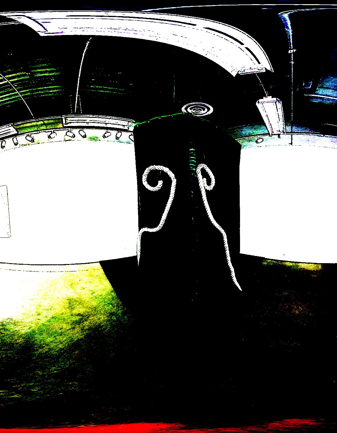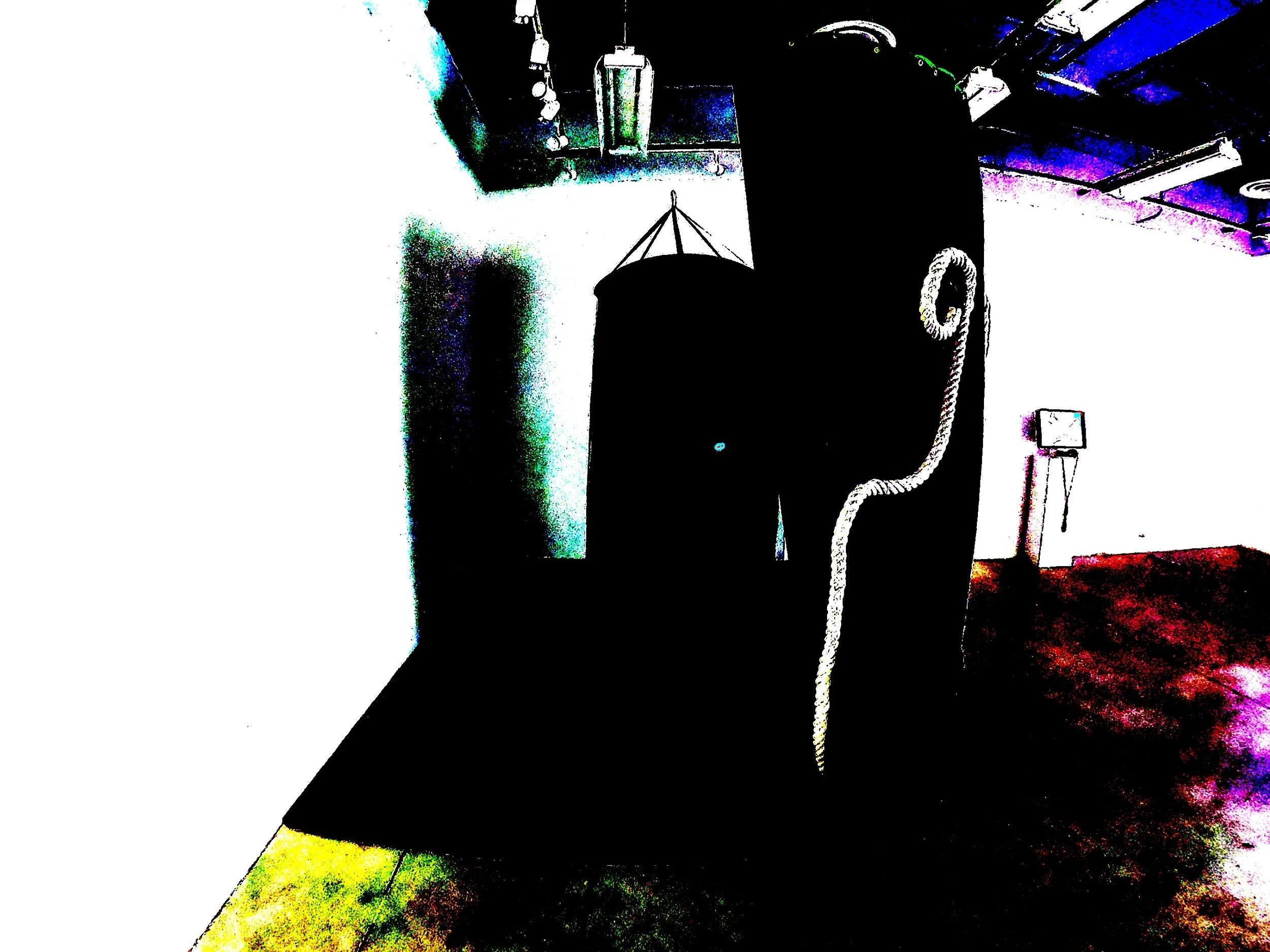 Ver-donkere-manen (Dutch for To Dark Moon, meaning to hide, to swipe, to darken into obscurity) invited participants to enter a Sonic Pod behind a barrier of heavy fabric depicting a mystical being important to kodiCrone. Within, headphones looped an 18 minute sonic autistic aurally-led composition, Sonic Mountain Climbing on the Dark Moon. The privacy, enhanced by minimal lighting and the use of headphones, allowed those listening inside to see out while not being seen themselves. The research kodiCrone conducted around the piece demonstrated a vast majority of participants feeling calmer after being in the Pod, enhancing their perception of the gallery and the world around them.